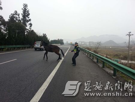 近日,在沪渝高速齐岳山隧道附近,上演了高速版“套马的汉子”:一匹黑马在高速上狂奔,民警想尽办法终将马套住。