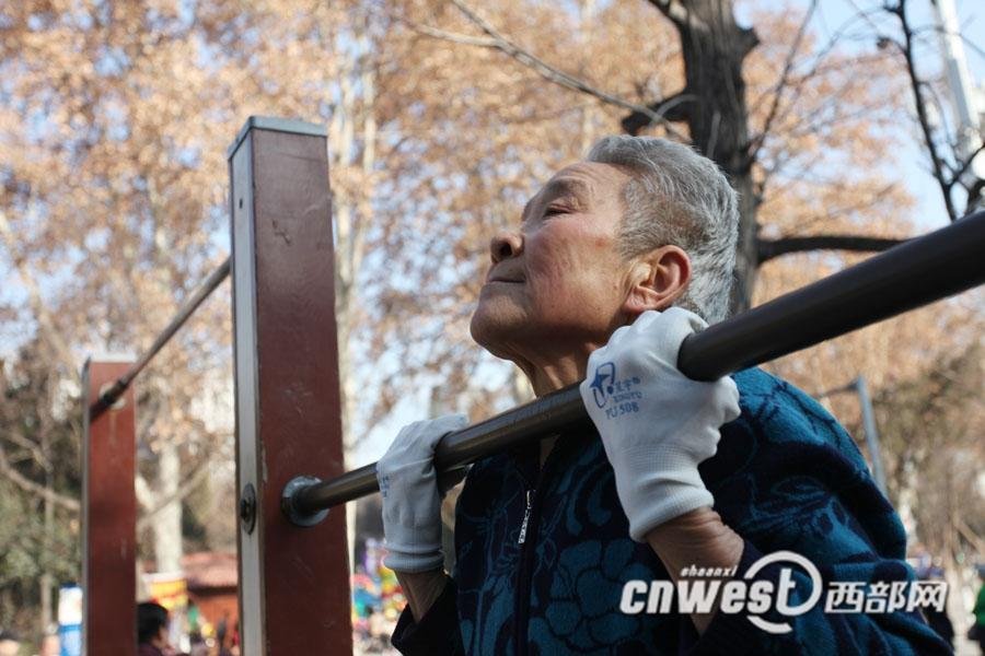 一年365天,72岁的西安市民王阿姨都会去离家不远的兴庆宫公园锻炼身体。在公园西门附近的器械健身区,王阿姨轻松地做着各种姿势的一字马,让人惊叹。不少老年人在她的带动下,也加入到锻炼的行列中。王阿姨说:“以前心脏不好,早搏、腿疼、腰疼,总上医院,4年前一次住院,3个孩子一人出了1万元,钱花了,病没有好。咱不能给儿女添麻烦了,得想办法让自己的晚年健健康康的。”魏永贤 图/文