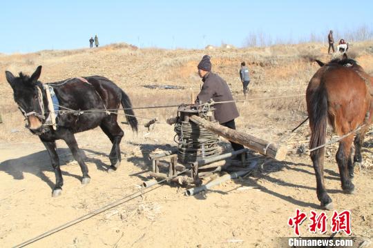 中新网沈阳1月12日电 (记者 沈殿成)作为“第三届沈阳法库冰雪节”活动内容之一的鱼梁冬捕节,12日正式揭幕,再现了马拉千米鱼网的古法捕鱼壮美景观。