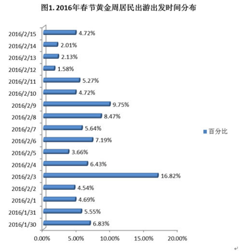 具体的出游出发时间方面,已预订了春节出游线路的消费者中,有38.42%的人选择在2月3日之前出发,总体在除夕之前出发的占比55.7%,具体的出发时间分布如图1.所示。