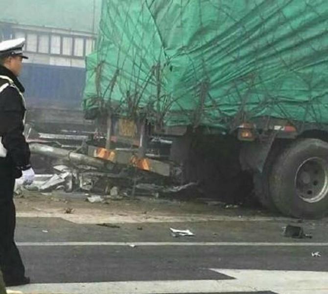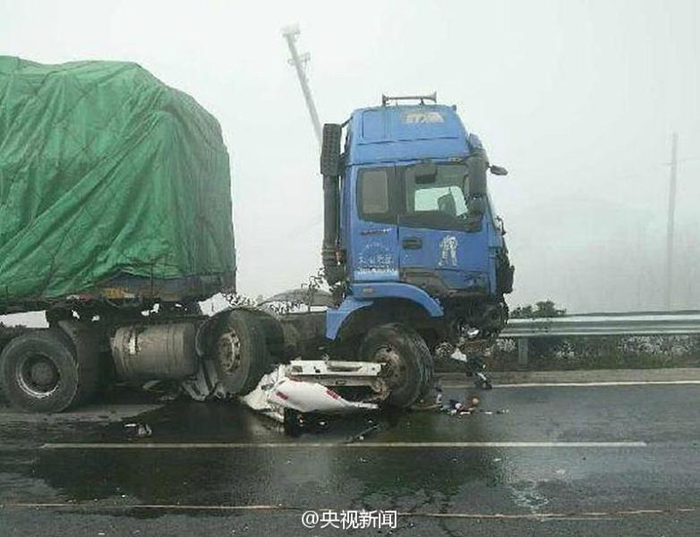 原标题:江苏一警车大雾天被货车压扁 两警员殉职[NextPage]