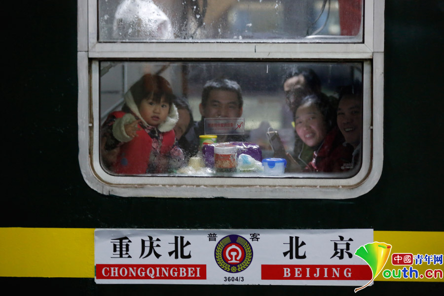 中国青年网北京1月24日电(记者 张炎良 开可)1月24日零时11分,2016年北京地区春运第一趟加开旅客列车3603次从北京站发出,开往目的地重庆北。