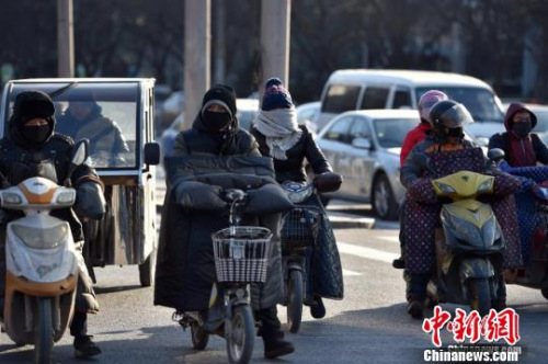 1月23日,北京-13℃的最高气温打破了30年来同期白天最低气温纪录。图为北京街头行人重装出行抵御寒风。中新网记者 金硕 摄