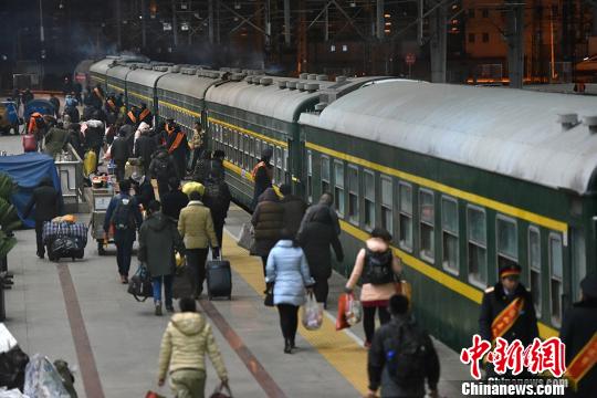 1月24日,2016年春运自正式开启,至3月3日结束共计40天。当日凌晨0点26分,2016年北京西站春运首趟临时客车,由北京西站开往安庆的3069缓缓驶出站台。中新网记者 金硕 摄