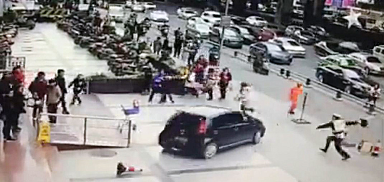 据成都商报1月24日报道,23日16时许,四川,成都交警一分局民警在二环路西一段正准备纠正一辆违规停放的黑色比亚迪轿车时,该车辆突然倒车,在人行道调头并沿非机动车道逆向行驶逃逸,造成4名路人受伤(3人软组织挫伤,1人骨折)。随后,警方在龙腾中路将肇事车辆查获挡扣。图为该车突然倒车,下一秒,车子急转,撞向人群逃走。