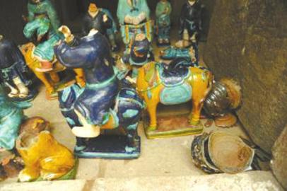 这处宦官墓群约2300平方米,发掘清理出的墓葬有43座。考古队员将墓葬分为了A、B、C三个区域。B区12号、13号,是一组双室合葬墓。从这两号墓中出土的瓷俑,除了釉色有所不同,人物造型、服饰、面部表情都如出一辙。