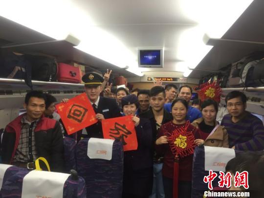 此外,广州南站还专门划定外来工候车区域,设立爱心服务专区,安排40名青年志愿者,从进站、候车到上车各个环节,全程做好引导服务。广九客运段加强人员培训,准备可口的饭菜和热茶,在动车上组织丰富多彩的文艺节目表演。