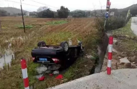 据河源市紫金县一网友今晚微信报料称:今日(2日)下午16时左右,紫金县古竹镇上下洞村路段发生一宗离奇的意外交通事故,一辆小轿车歪歪扭扭驶入稻田,最终小轿车在田里“四脚朝天”,车上3人不同程度受伤。