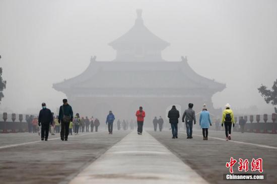 资料图:2015年12月25日,北京市气象台升级发布霾橙色预警信号。 中新社记者 富田 摄