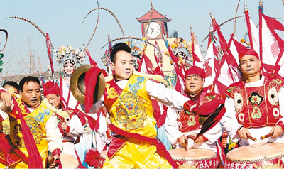 2月9日,陕西眉县秦岭太白山山脚下,群众自发组织的民俗文化游演活动热闹非凡。