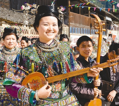 2月9日,在贵州榕江县朗洞镇色边村,侗族同胞们盛装举行“踩歌堂”传统民俗活动。