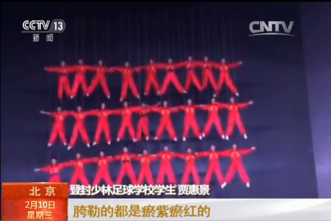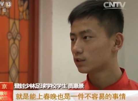 孩子们的训练视频一次次的传给导演组,终于获得认可。领队们也慢慢的透露给队员消息,说这个节目要递到春晚去。听到这个消息后,孩子们越排越有劲。在2016年元旦这一天,来自登封少林足球学校的27名小演员和教练们一起,进京参加排练。