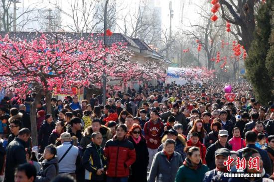 资料图:2月9日,北京龙潭庙会游人如织。据统计,大年初一全天,北京龙潭、地坛两大庙会共接待游客34.4万人,其中龙潭庙会15.3万人,地坛庙会19.1万人,均创同期新高。 中新社记者 韩海丹 摄