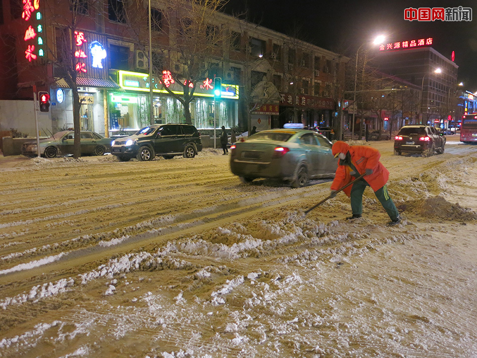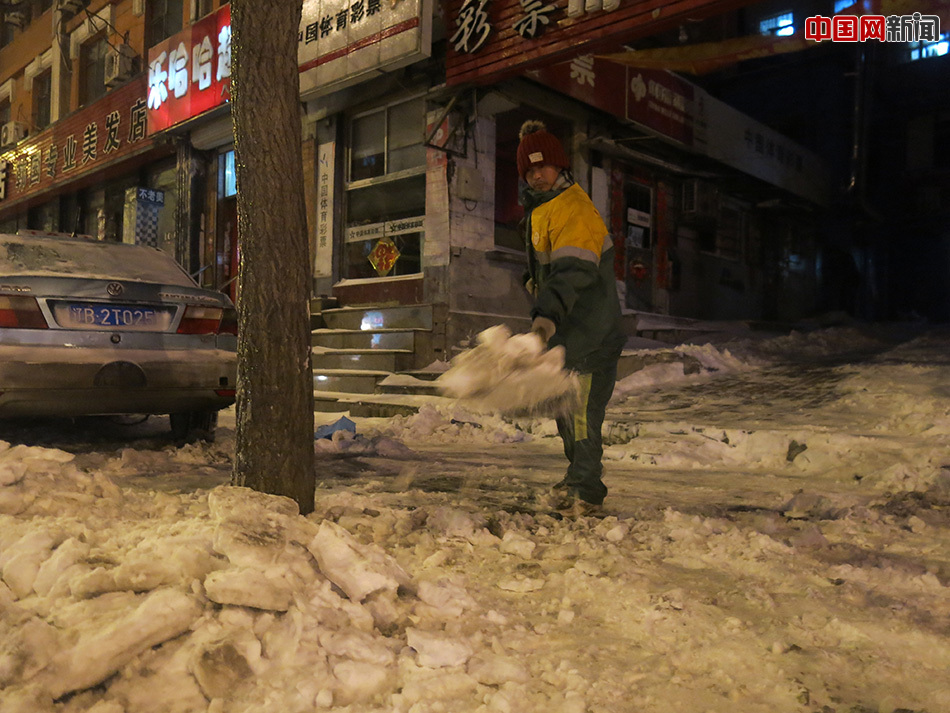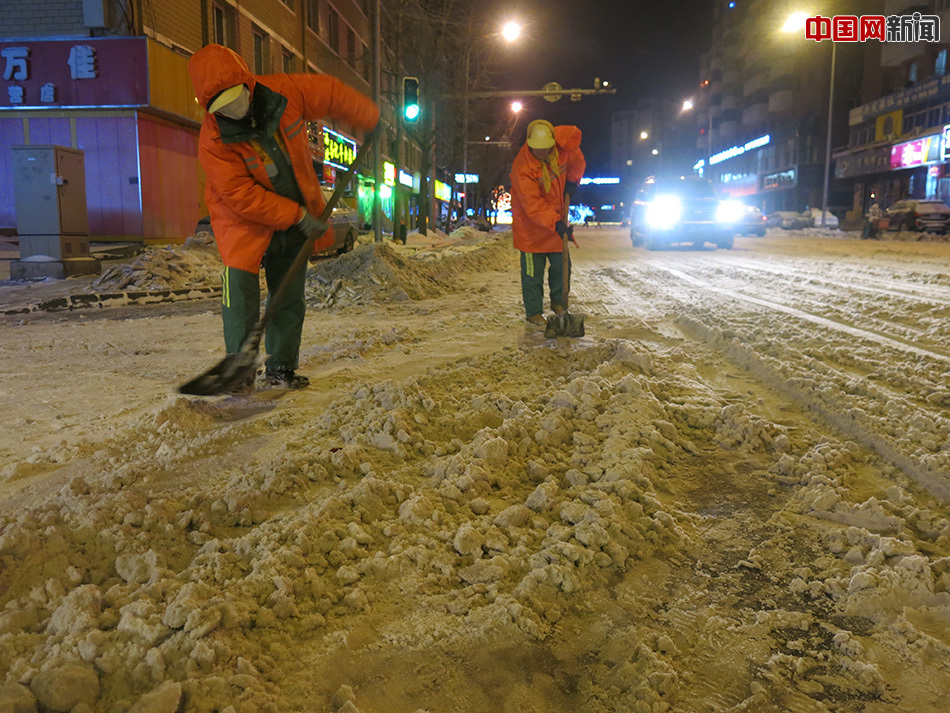 “路上这么多雪,不好走道,车也打滑,得有人收拾。今天得干到十二点,都不一定能干完。”一位大姐说,有一次也是下了这样大的大雪,大家工作到凌晨三点才回家。