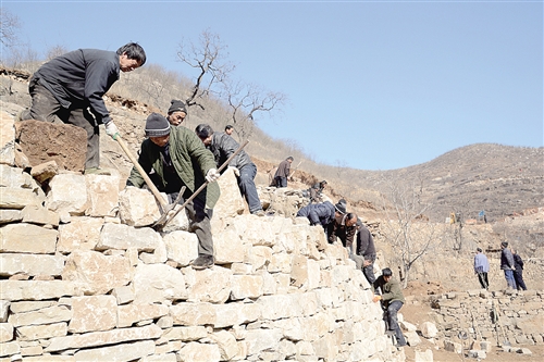 后牧牛池村村民正在修建山村公路。冯晓广摄