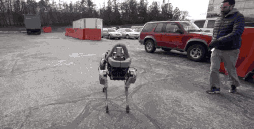 报道指出,“波士顿动力”于2013年被谷歌公司收购,其最为著名的当属BigDog狗形机器人。这种机器人重达160磅,在2015年公布的展示视频中,实验员曾不断地将其踢倒,以展示其重新站立的能力。以致于有网友给这种机器人取了个绰号叫“不要踢我”。