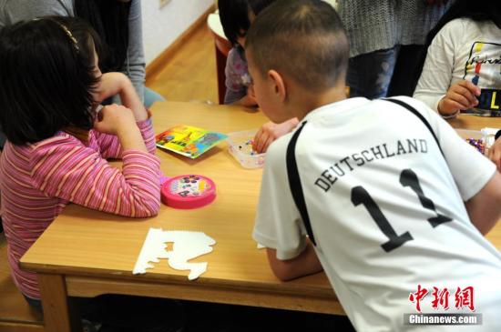 从2015年初至今,已有超过110万难民进入德国境内。由于德国尚未对接纳难民的人数设置上限,直至2016年3月3日,仍有难民不断地经欧洲其它国家进入德国。3月3日,德国首都柏林一处难民收容所内,几名儿童在志愿者带领下做益智游戏。 彭大伟 摄