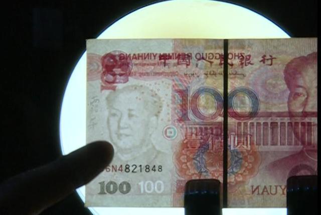 记者看到,这张钞票表面上并没有什么特殊,但仔细对照水印一看,这区别就看出来了!桓先生的这张百元大钞的水印头像明显呈现出一丝笑容。