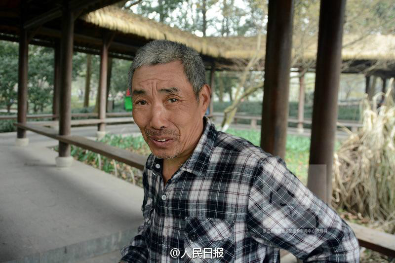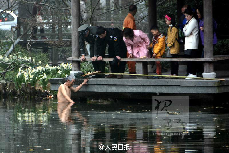 原标题:感人 杭州六旬绿化工脱衣跳湖为女游客捡手机
