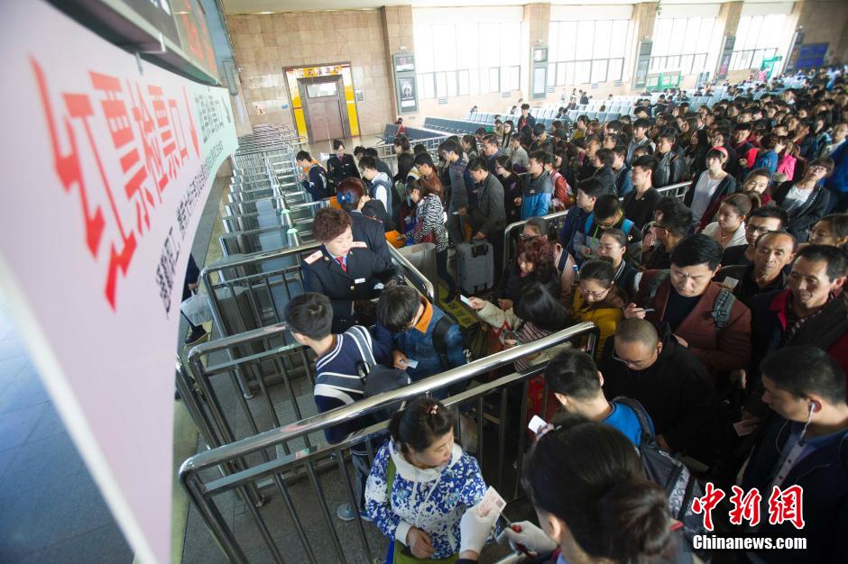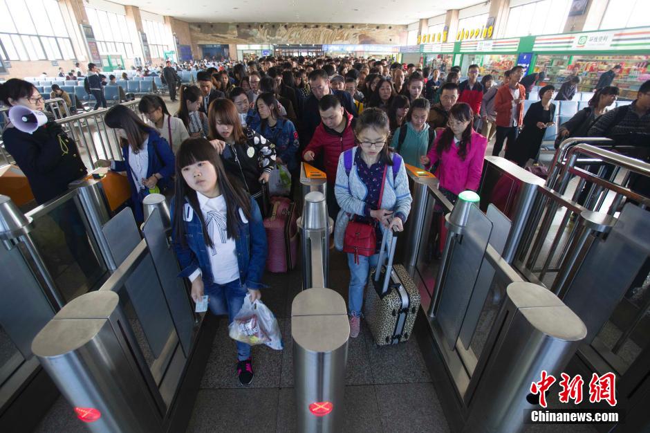 4月4日,山西太原火车站,民众在排队乘车。当日,清明小长假最后一天,探亲、祭祖、旅游的民众纷纷踏上返程,中国多地铁路、公路、民航迎来客流返程小高峰。 张云 摄