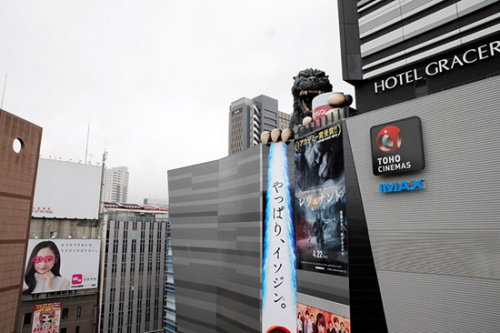 据报道,哥斯拉的左手部分经过重新制作,手部紧握一只高4.5米、直径4.1米的巨大漱口杯。据悉,杯子可容纳约30吨的液体,大约可供普通人漱口50万次。漱口造型将限时展示到10日为止。