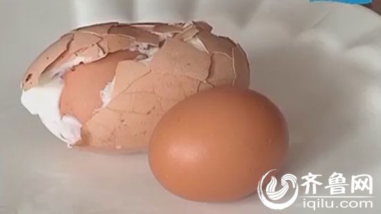 据山东广播电视台公共频道《民生直通车》报道,据家住高密市小胡村李淑霞介绍,她总共养了6只鸡,而且都是普通的蛋鸡,就在4月3号那天,她去捡蛋的时候,无意中发现了这个巨型蛋,当时自己也没舍得吃,就把它放了起来,后来清明假期的时候,朋友来家里玩,才拿出来煮了煮,煮熟扒开的时候,发现这个巨型蛋不得了。李淑霞说:“昨天吃的时候一看,扒开里面还有一个鸡蛋,很奇怪就是,发了朋友圈里,朋友都说没见过,也没听说过。”