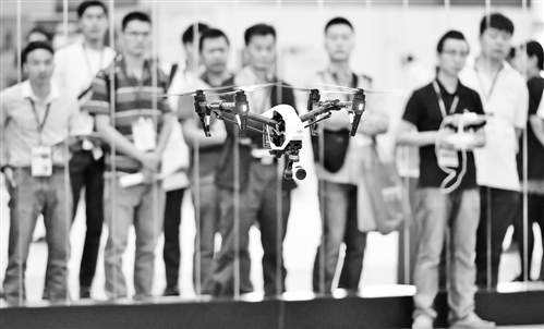4月8日,观众在博览会上观赏“大疆”无人机的现场演示。当日,第四届中国电子信息博览会在深圳开幕。该博览会由工业和信息化部、深圳市政府联合主办,是目前亚洲规模最大的电子信息综合性博览会。本届博览会吸引了来自世界各国的超过1700家行业领军企业参展,同期举办100余场研讨活动,重点发布超过3000件新产品、新技术。