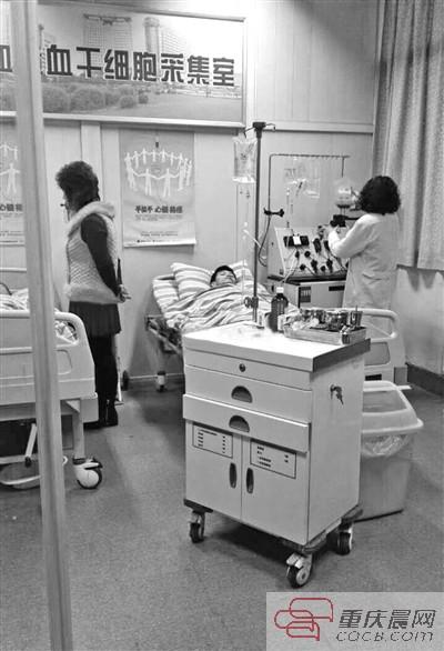 在重庆新桥医院里,王泽源经历了注射第一针动员剂、采集造血干细胞等过程,并于3月15日早上8点进入骨髓移植仓,抽出部分骨髓。麻药醒来之后,疼痛让王泽源一宿未眠,但他内心却是欣喜的:“这点痛算什么!重要的是我的骨髓经过血管输注到爸爸体内,能让爸爸重新建立起正常造血与免疫系统。”