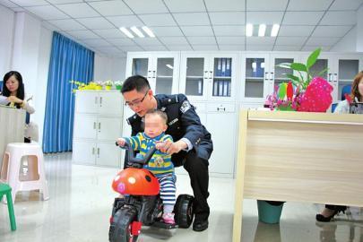 4月14日,连界镇派出所的民警们带上礼物,来到了内江市儿童福利院,给 小 宝 宝 过 1 岁 生 日 。看到小宝宝在玩具车上欢快的玩耍,陈宁的心里很不是滋味,这一年里,陈宁和同事用了很多办法,依旧没有小宝宝亲生父母的线索。