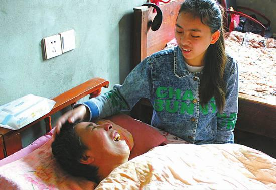 “妈妈是云南人,特别能干。在患病前,操持家务、耕地种田,她样样都会,家务事从来不让我和奶奶操心。” 赵云霞说,以前, 爸爸赵希和常年在云南永德县打工,虽然一个月只有1000多元的工资,但他还是会省吃俭用将800元钱寄回家。父亲不在家的日子,妈妈一个人忙里忙外,把家里照顾得井井有条。 一家人日子过得虽然清贫, 但总算是在朝着好的方向发展。眼看着生活一天比一天好,没想到妈妈却突然病倒了:去年6月的一天,妈妈早上起床时突然倒在地上,爸爸当时不在家,还是邻居帮忙将妈妈送进了医院。 经过医生全力抢救,妈妈脱离了生命危险,但全身瘫痪,生活无法自理。 三天后, 爸爸从云南赶回南充,很长时间都不能接受这个残酷的现实。