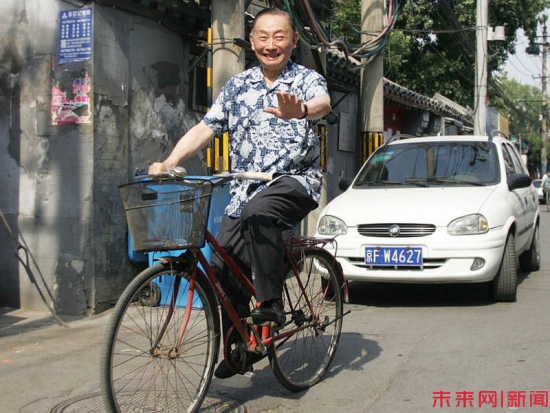 梅葆玖在家附近骑自行车(资料图)