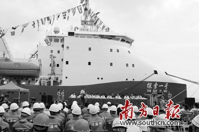 南方日报讯 (记者/黄少宏 通讯员/潘嘉嘉)5日,4500米载人潜水器工作母船及深海科考通用平台“探索一号”轮(如图)在广州南沙中船龙穴修造船基地中船澄西船舶(广州)有限公司完工交付,正式交付中国科学院,并将于6日从南沙启程,驶向海南三亚。该船近期还将计划驶往太平洋马里亚纳海沟,执行中科院先导专项“海斗深渊”科考任务。据悉,这是全国第一艘完全国产自制的深海潜水器支持母船。