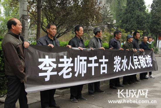 杨双牛说,李保国和村民的感情非常好,过年时,村里人都爱把他拽到家里请他吃饭。今天的悼念活动,不仅村里人都来了,很多周边村的村民也来了。
