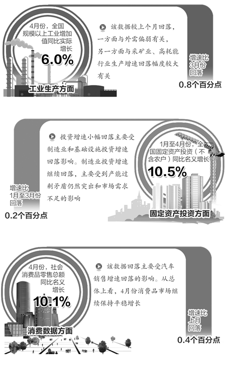 5月14日,国家统计局发布了4月份工业生产、固定资产投资、消费等数据。如何解读这些经济运行数据释放出来的信号?国家统计局有关专家接受了《经济日报》记者的采访。