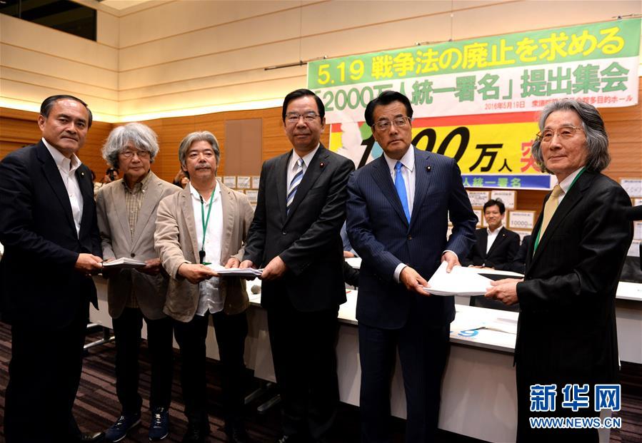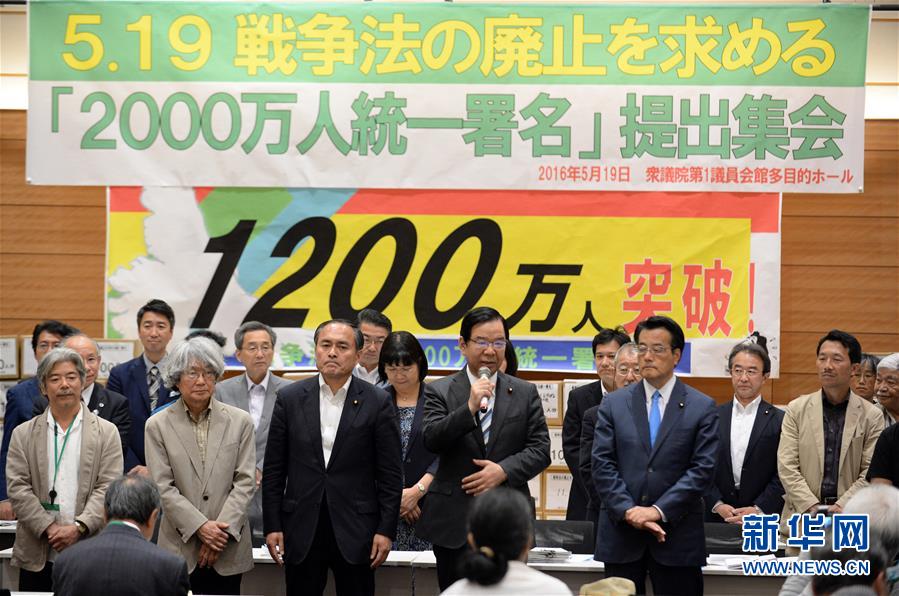 日本市民团体19日在东京举行集会,通过在野党向国会提交1200万个要求废除安保法的市民签名。自去年11月起,日本各地市民团体统一发起“废除安保法2000万人统一署名”运动,通过登门拜访、邮寄等方式收集反对安保法的市民签名。截至目前,共收到日本全国各行各业1200万民众的签字。新华社记者马平摄