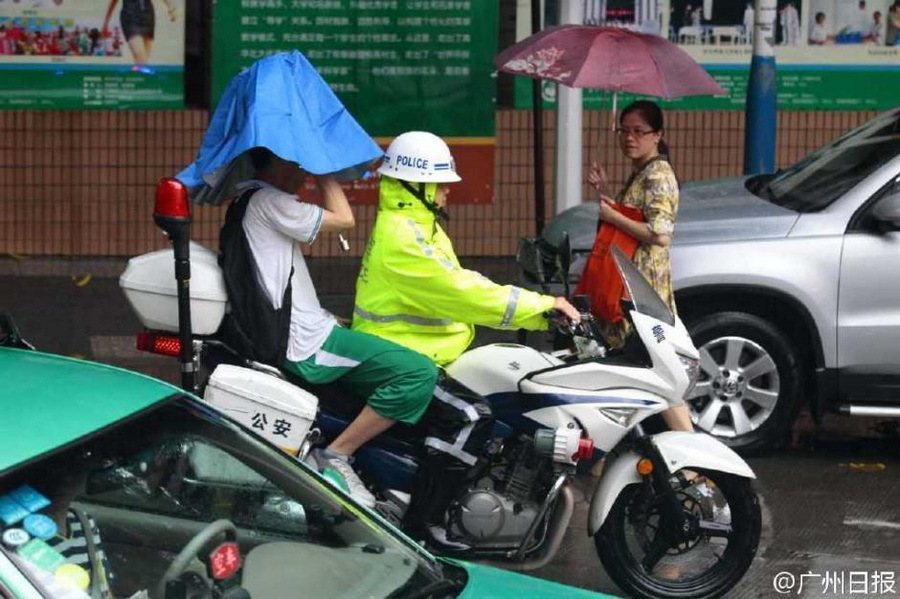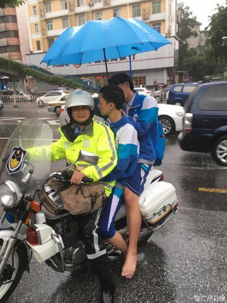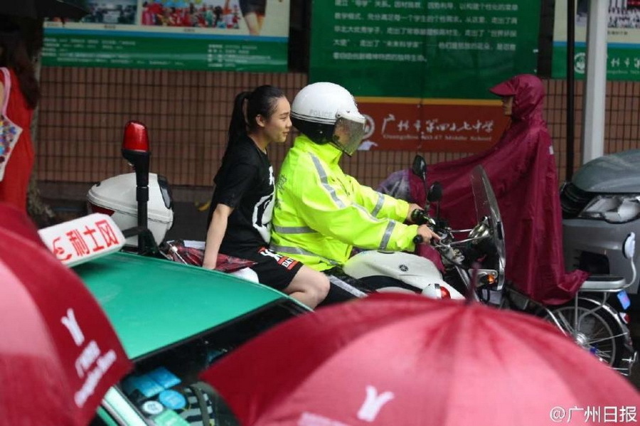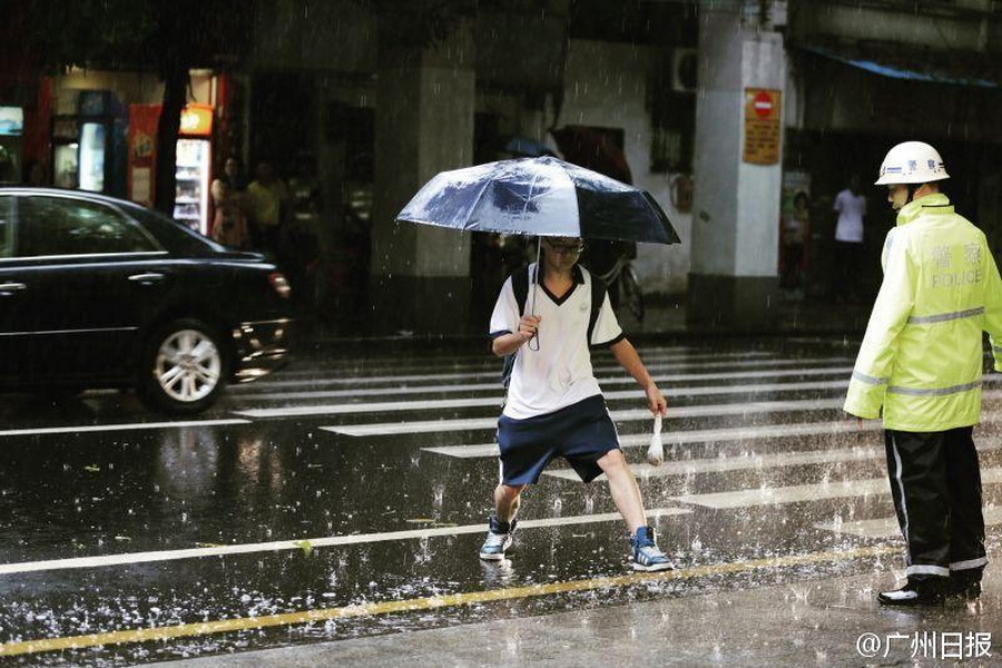 6月8日是高考第二天,却不似昨日天公作美,下起了暴雨。供图:广州日报官方微博