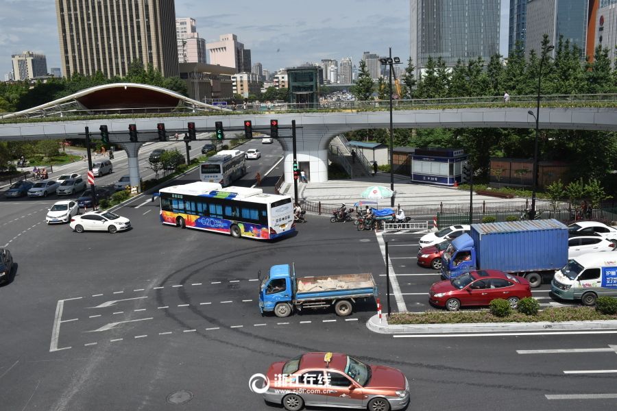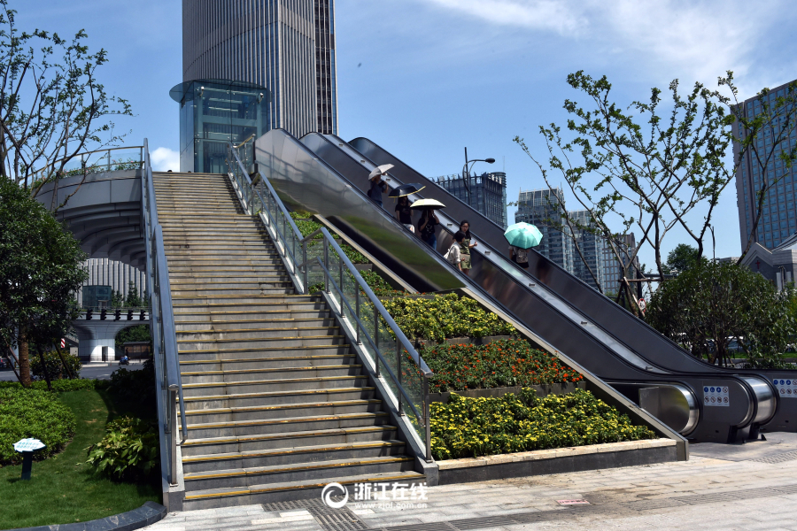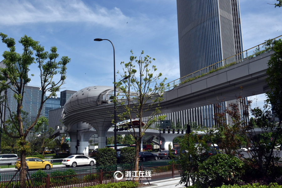 浙江在线7月1日讯(记者 叶寒青 通讯员 方晔 摄)6月30日,一座造型奇特的天桥在杭州新塘路庆春东路口正式启用,这座天桥的名字叫庆新天桥,是杭城首座仿树形天桥,集通行、景观、安防功能于一体,以生态的树上花园设计理念为主旨,桥梁外装饰进行树形拟态,天桥进行立体绿化妆点,沿楼梯往上延伸至主梁两侧花槽,桥面雨棚镂空处设置花池。天桥的投入使用意味着行人都会通过天桥过马路,路口交通将会变得更为通畅。