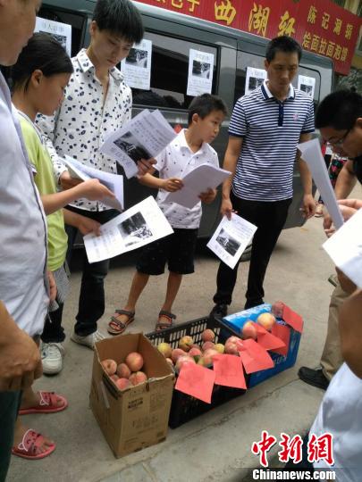 陈国西“赠桃寻妻”的举动引来不少路人帮忙散发寻人启事。 韩章云 摄