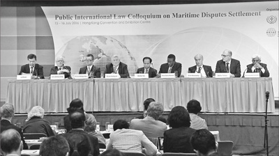 为期两天的海洋争端解决国际法研讨会7月16日在香港落幕。此次研讨会由香港国际仲裁中心与中国国际法学会主办,来自中国、美国、澳大利亚、法国等10多个国家和地区的210多名国际法和海洋法专家学者与会。与会专家对中国不接受、不承认南海仲裁案临时仲裁庭所谓裁决的严正立场表示支持,认为中国做法才是在捍卫国际法尊严,临时仲裁庭越权扩权违反国际法,在国际法领域树立了一个坏典型,政治操纵下的所谓裁决必将遭到唾弃。