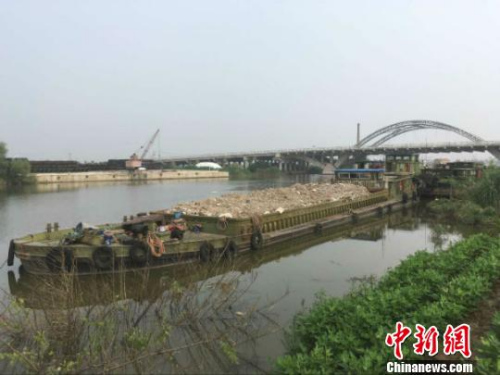 没有来得及卸载、已经被有关部门扣押的上海垃圾装运船。 陆建国 摄