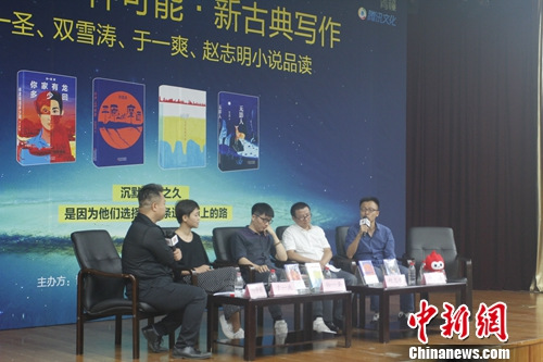中新网北京7月17日电(上官云)17日下午,“文学的另一种可能:新古典写作”研讨会在北京举行,孙一圣、双雪涛、于一爽、赵志明四位作家的新书同期首发,分别是中短篇小说集《你家有龙多少回》、《平原上的摩西》以及《火不是我点的》、《无影人》。著名文学评论家李敬泽、杨庆祥,作家徐则臣、张悦然等就以上四位作家的作品特点进行讨论。