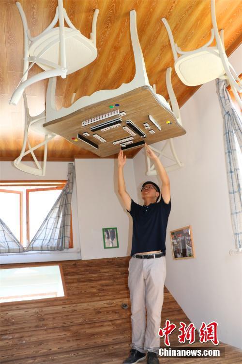 倒置麻将桌。 中新社记者 何蒋勇 摄