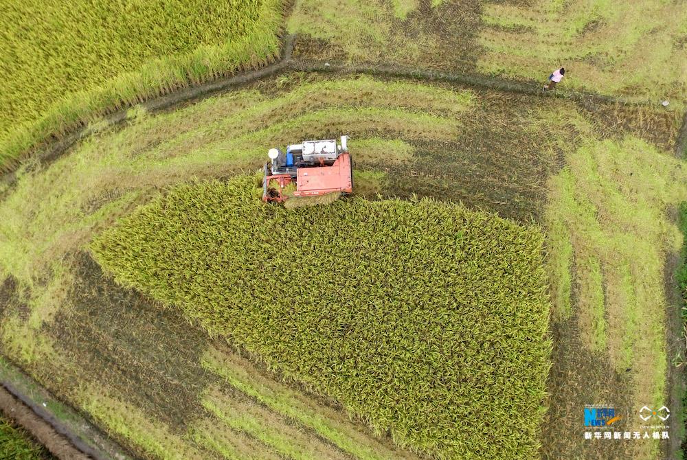 一年之中,农民最艰苦、最紧张、最集中的劳动莫过于战“双夏”(也叫双抢),既要顶着酷暑的炎热,又要面对台风最多的季节:大暑至立秋。在半个月内要全面完成的夏收、夏种等农事。图为7月16日拍摄的百色市右江区龙景街道石龙村抢收稻谷。新华网发 韦万忠摄