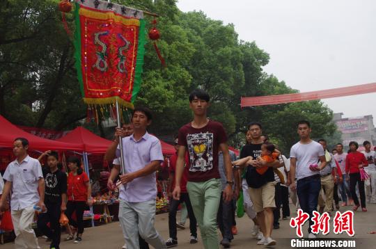 来自南昌周边地区的游客组团前来,列队进香。 王昊阳 摄