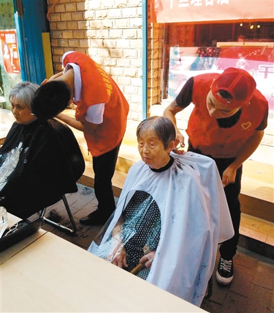理发店给老人免费理发