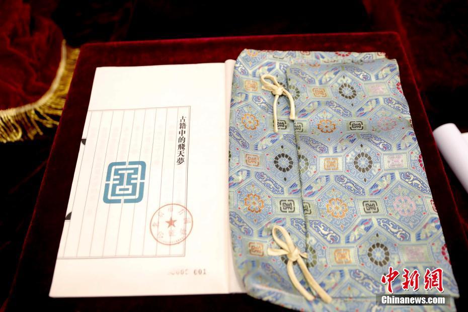 9月26日,长征七号运载火箭首飞搭载中华典籍交接仪式在北京国家图书馆举行。中国运载火箭技术研究院与国家图书馆双方领导签署《长征七号运载火箭首飞搭载中华典籍交接证书》,国家图书馆将二册典籍和五张读者卡回赠中国运载火箭技术研究院。6月25日,长征七号运载火箭在海南文昌发射场发射成功。26日,该火箭搭载的多用途飞船缩比返回舱在内蒙古巴丹吉林成功着陆,国家图书馆应邀提供的搭载物,包括特制线装典籍四册、国图读者卡二十五张顺利返回。 中新社记者 杜洋 摄
