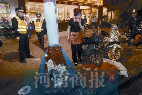 执法队员劝告经营者不要随便将垃圾倒在门口 河南商报记者 邓万里/摄