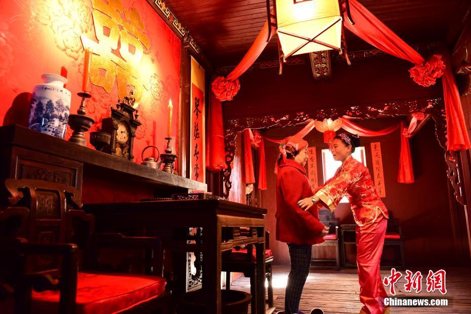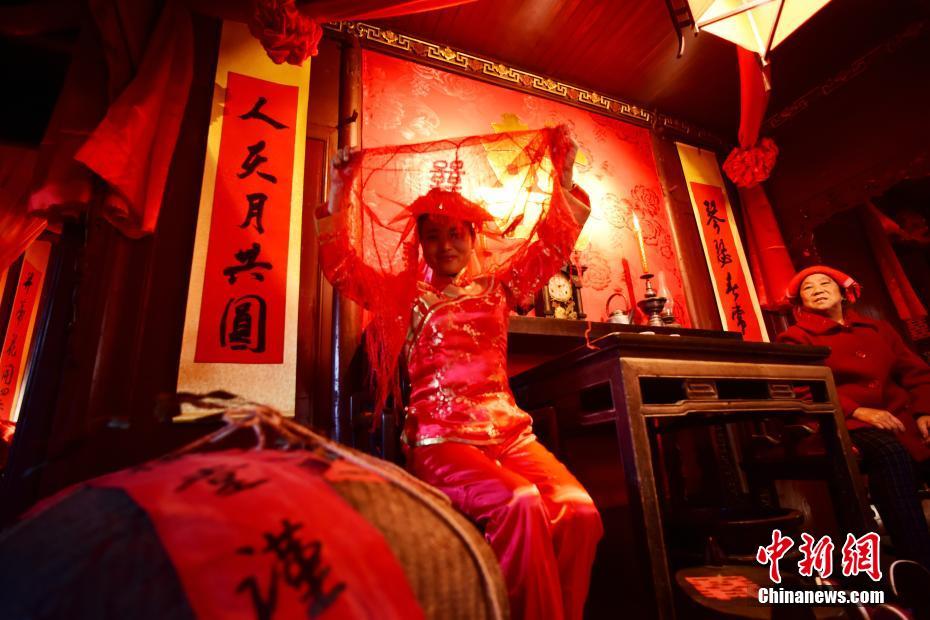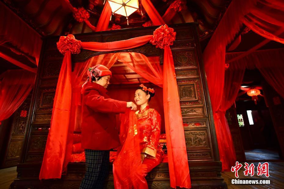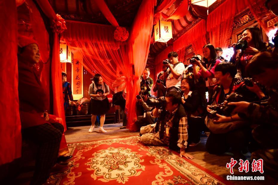 10月15日,拥有“中国最美乡村”美誉的江西省婺源县篁岭古村上演传统婚俗“哭嫁”。女儿在出嫁当天,会跪拜父母以谢养育之恩,母亲亲手为女儿盖上红丝巾痛哭不舍,母女俩会以当地方言哭唱的方式,互相祝福一番。母亲教女儿今后要好好孝道公婆丈夫,多子多福。女儿祝福父母多保重身体,会常回娘家探望和记住父母的教导。有趣的习俗引来摄影爱好者举着“长枪短炮”,狂按快门。曹加祥 摄