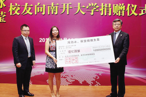 天津北方网讯:昨日,南开大学毕业生周海冰、侯莹向母校捐款1亿元人民币,用于学习的建设和发展。这是南开大学建校以来收到的最大一笔单笔校友捐赠。
