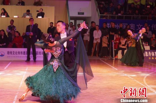 参赛选手在进行华尔兹舞蹈比赛 韩章云 摄